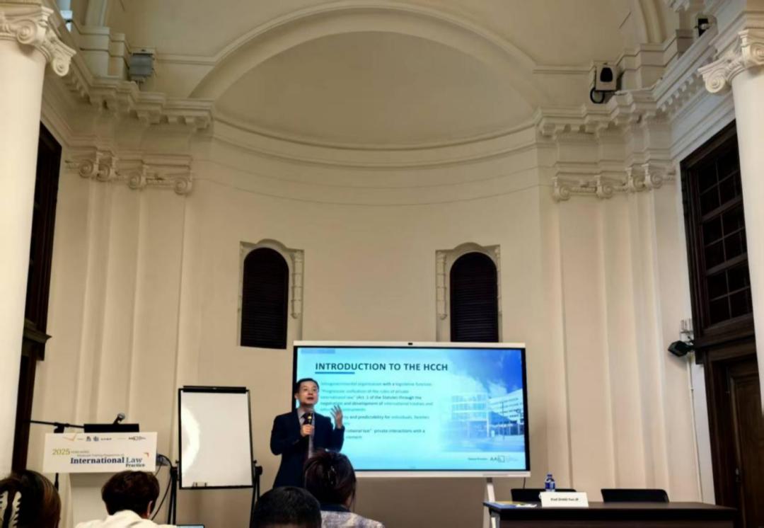 上午,香港大学郑家纯基金国际法教授、海牙国际私法会议亚太区办事处代表赵云教授以《判决公约》与香港/内地《关于相互认可和执行民商事判决的安排》为主题开展授课。赵教授系统梳理了海牙国际私法会议的机构定位、核心职能与全球布局,深入解读了《承认与执行外国民商事判决公约》及两地民商事判决相互认可执行安排的核心内容。授课中,他重点从适用范围、判决定义、可执行性原则及驳回情形等维度,对比分析了公约与安排的异同点,不仅深化了学员对跨境判决执行规则的专业认知,更有效拓宽了国际视野,强化了实务操作能力。