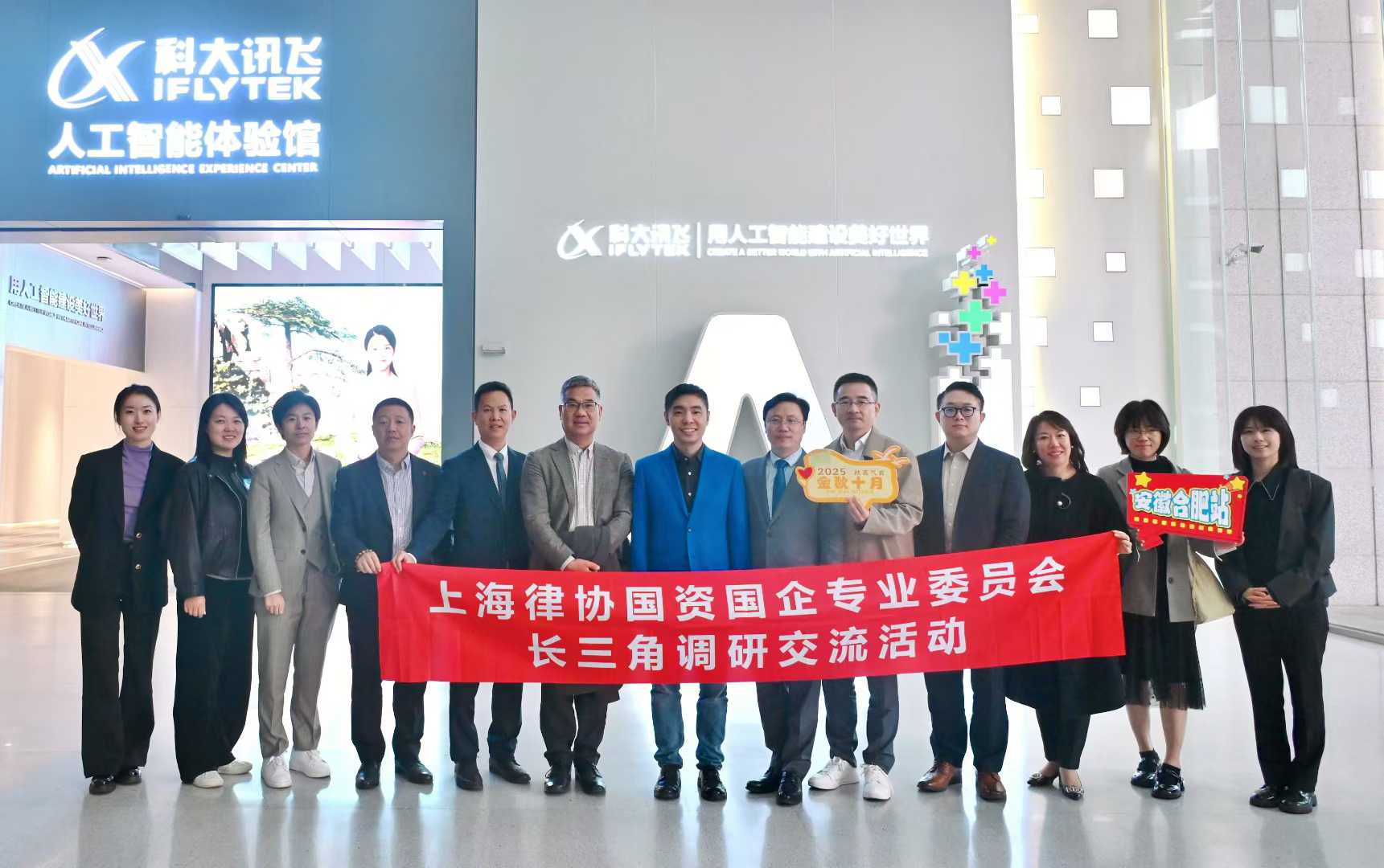 第一站,国资国企专委会走进坐落于安徽合肥的人工智能领军企业——科大讯飞股份有限公司(下称“科大讯飞”)总部,围绕AI在政务、教育、医疗、法律等各领域中的应用,以及如何通过大模型、数字化赋能企业合规发展等主题进行了调研与交流。科大讯飞的法总、法律与科技负责人、诉讼经理、法务BP等出席了本次调研交流活动。
