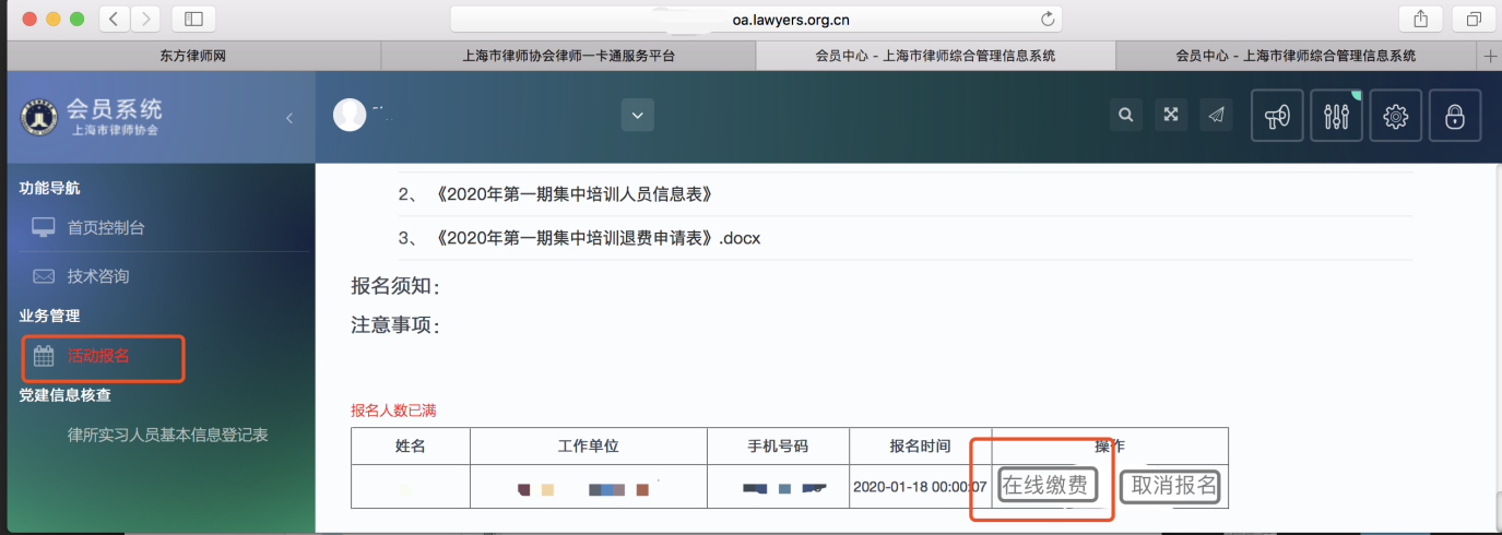 报名通道支持:律师会员、特邀会员、实习人员进行会议、活动的报名,本次报名具体开放范围以上方红色字体为准