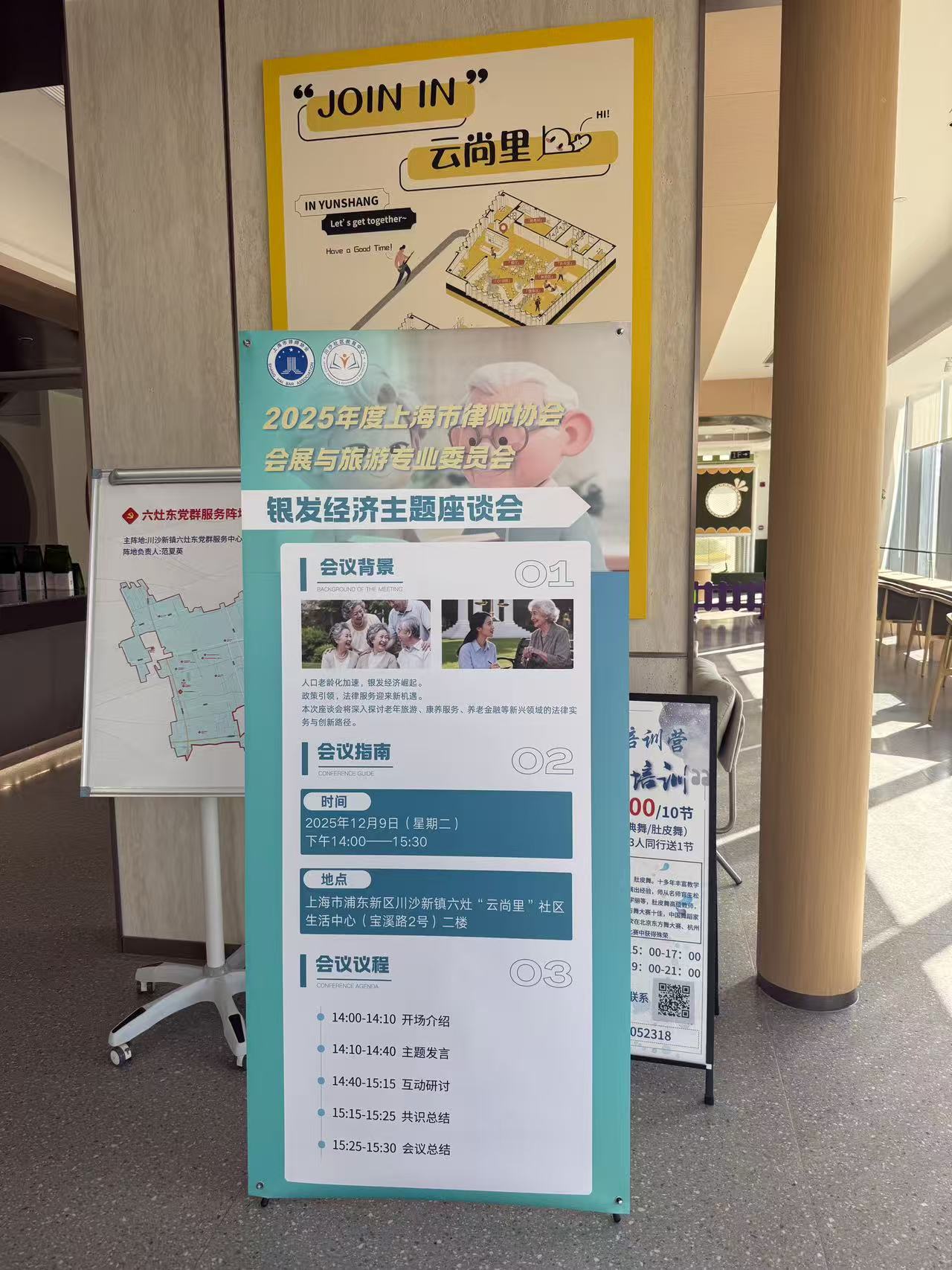 2025年12月9日,上海律协会展与旅游专业委员会在川沙新镇六灶“云尚里”社区生活中心(宝溪路2号)二楼休闲共享空间室召开“银发经济”主题座谈会暨会展与旅游专业委员会2025年度年终工作总结会议。