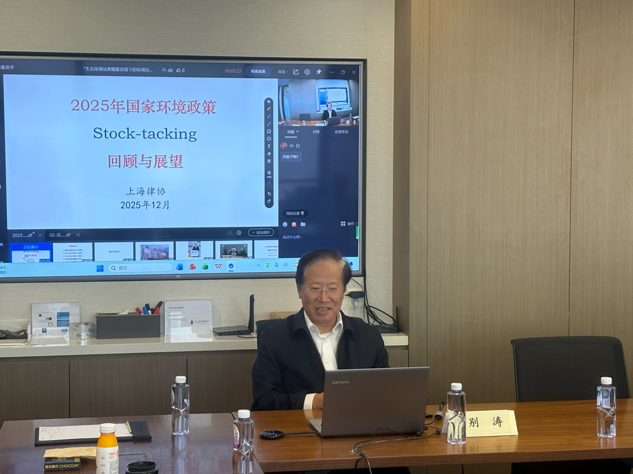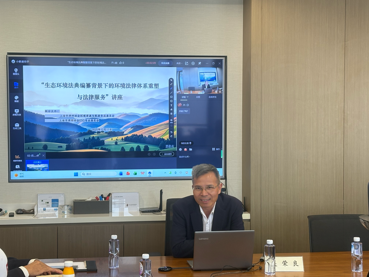 为汇聚行业智慧,厘清法律体系重塑的核心脉络,探寻法律服务的创新路径,推动环境法治建设与绿色发展贡献专业力量,2025年12月11日,上海律协环境资源与能源专业委员会联合ESG专业委员会,在上海市金茂律师事务所成功举办了“生态环境法典编纂背景下的环境法律体系重塑与法律服务”讲座。讲座采用“线下+线上”相结合的形式,共80余人参会,共同探讨近一年来生态环境方面的法律法规与政策实施进度。