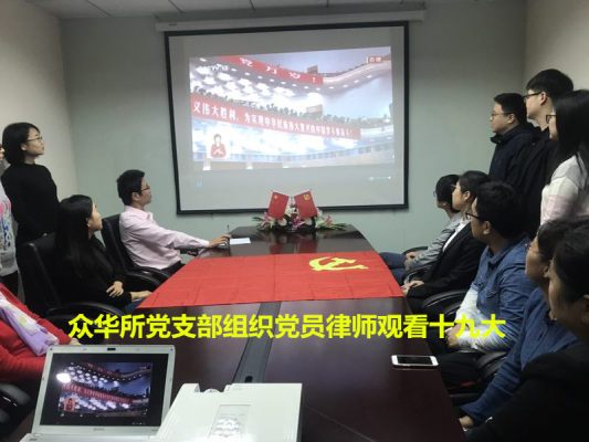 2017年10月18日上午9:00,中国共产党第十九次全国代表大会在大会党隆重开幕。虹口区各律师事务所积极组织党员律师、律所行政人员观看了开幕会盛况直播,认真聆听、学习习近平总书记代表十八届中央委员会向大会作的工作报告。与此同时,许多律师还通过网络、广播等不同形式收看、收听了大会直播。