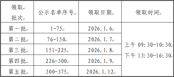 为方便会员领取,本次领取将按抽选结果公示名单分批次在工作日进行。请务必根据下表安排,在规定时间内领取。