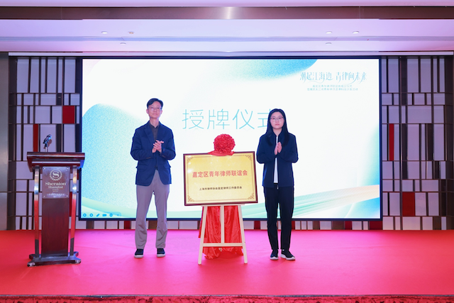 在全体嘉宾的见证下,嘉定区团委副书记王梦云与区司法局四级调研员张磊共同为“嘉定区青年律师联谊会”揭牌。红绸揭开的,不仅是牌匾,更是嘉定青年律师团结协作、携手奋进的新篇章。