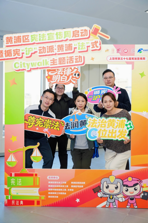 2025年12月9日,黄浦区宪法宣传周正式启动,“黄浦‘法’式Citywalk”主题活动也同步热力开启。本次活动采用“主场仪式+法治市集+城市行走”联动模式,打造了一堂“可漫步、可感知、可参与”的行走式法治公开课。