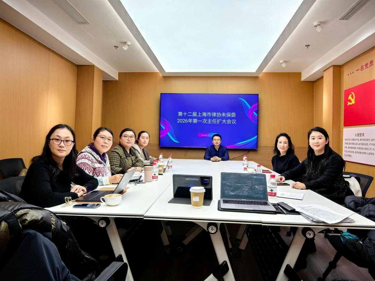 2026年1月19日下午,上海律协未成年人权益保护专业委员会(以下简称“未保委”)于上海华夏汇鸿律师事务所召开2026年度第一次主任扩大会议,钱晓峰、龚佳丽、张雯三位副主任与秘书长吴祺桢,委员计时俊、贾欣彦、谢颖、俞钧等八人与会。