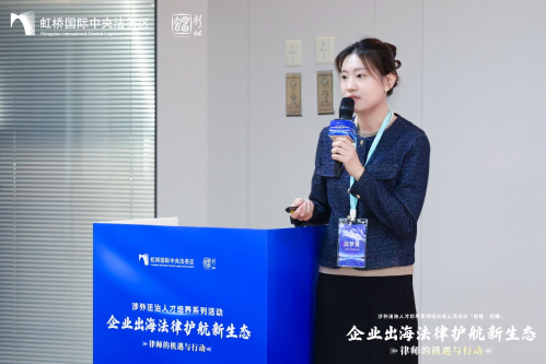 在“法律人开放麦”环节,三位由闵行律师工作委员会推荐的来自虹桥涉外法律服务人才库律师,以7分钟快闪分享,带来了聚焦国际合规、贸易摩擦与跨境争议解决的实战经验与思考。