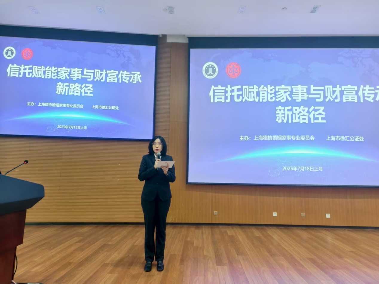 7月18日下午,上海律协婚姻家事专业委员会(下称“婚家委”)和上海徐汇公证处在上海交通大学凯原法学院东方会堂共同举办“信托赋能家事与财富传承新路径”研讨会。本次研讨会共计280余人参会。参会人员来自律师、学者、信托从业人员及公证行业的各界专家与专业人士,围绕家事信托在普通家庭中的实际应用、法律实践与制度设计展开深入交流。