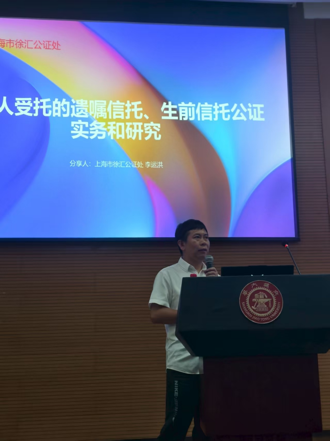 紧接着,上海市徐汇公证处副主任李运洪分享了“人口老龄化背景下自然人受托的遗嘱信托、生前信托公证实践”,他重点介绍了提存与民事信托在财富传承与资产保护中的应用实践,并详述了遗嘱信托的操作流程,以及公证机构在民事信托体系中所发挥的角色与制度价值,为律师与金融机构拓展相关业务提供了具有实践意义的思路与参考。