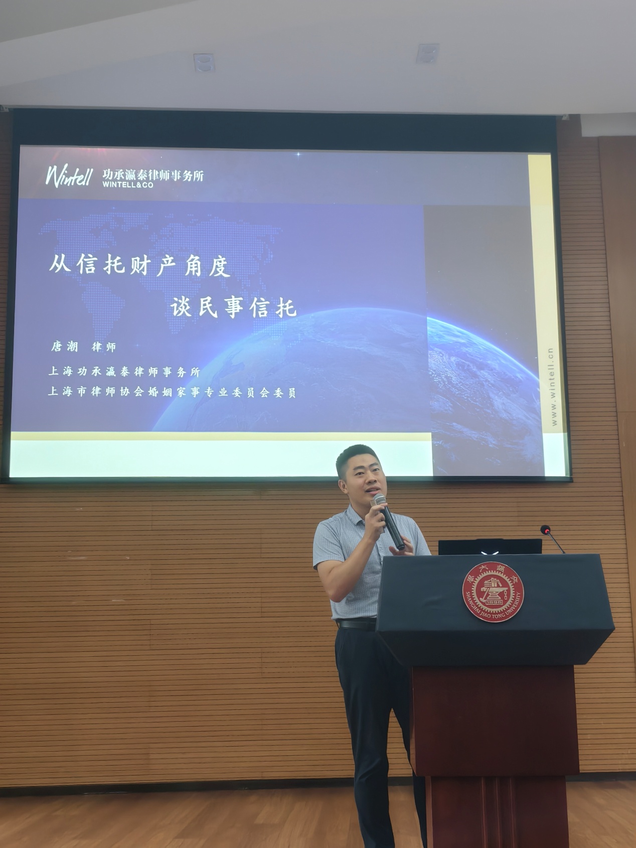 上海律协婚姻家事专业委员会委员、上海功承瀛泰律师事务所律师唐潮做了题为“从信托财产角度谈民事信托”的主题分享。他指出,民事信托的实践需兼顾委托人的具体需求与信托财产的特性,并系统梳理了现金、保险、不动产、股权等多种信托财产类型的设立与管理逻辑。