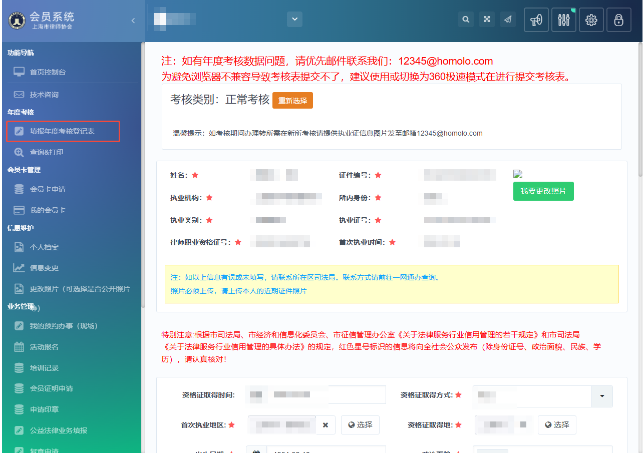 友情提醒:年度考核期间,电话咨询量将大幅上升。建议遇到问题时,通过电子邮件或传真方式提出,并留下联系方式。技术支持和会员部会尽快与您联系。