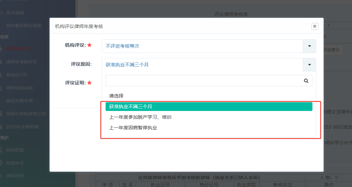 律师事务所负责对本所律师2025年度执业活动进行考核评议,出具考核意见。