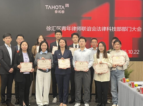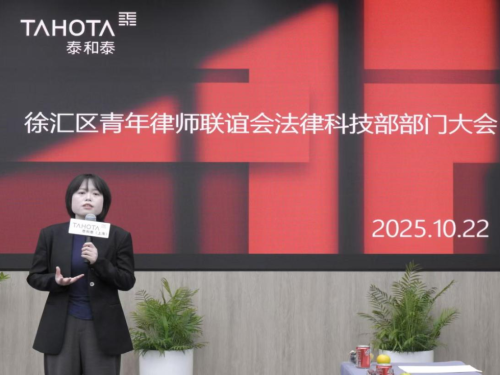2025年10月22日上午10点,上海市徐汇区青年律师联谊会法律科技部首次部员大会在泰和泰(上海)律师事务所1号报告厅召开。会议由区青律联法律科技部部长、泰和泰(上海)律师事务所杨一帆律师主持,区青律联会长、上海数科律师事务所执行主任陈媛律师,区青律联秘书长、上海华诚律师事务所李佳奇律师,区青律联副秘书长、泰和泰(上海)律师事务所胡宪律师,以及来自泰和泰、上海数科、汇业、德禾翰通、申汇等律所的法律科技部委员与部分实习律师共同参会,围绕法律科技落地应用,明确部门发展方向。