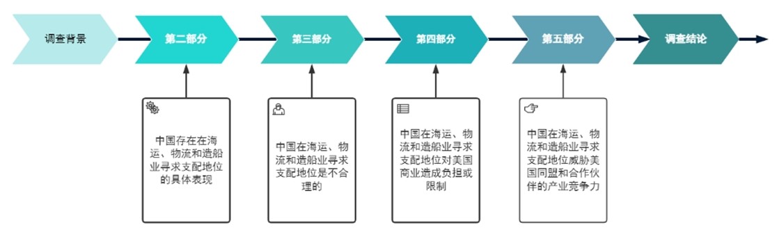 这些均被作为调查报告作出“中国在海事、物流和造船业寻求支配地位的目标是不合理的,并且给美国商业造成负担或者限制”结论的依据。