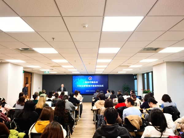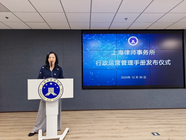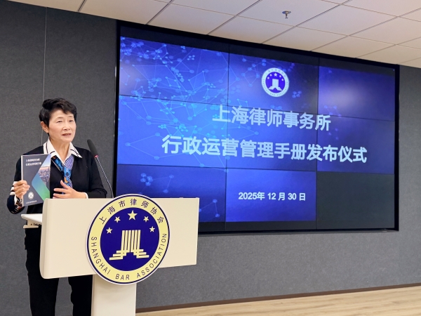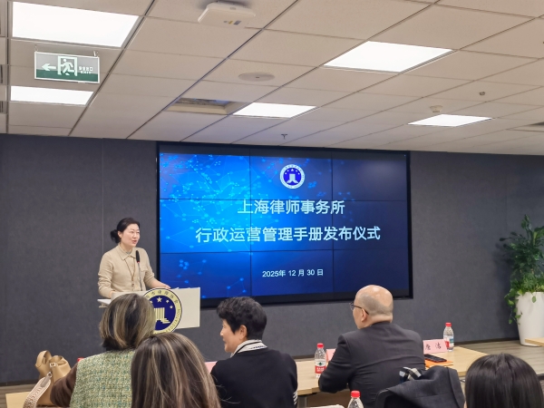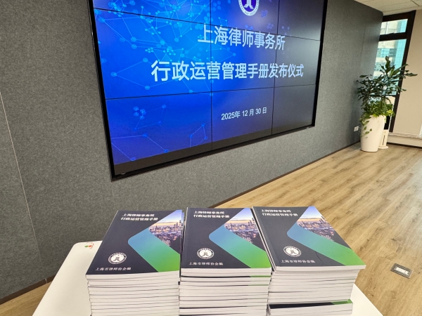 2025年12月30日下午,《上海律师事务所行政运营管理手册》发布仪式在上海律协20楼报告厅举行。上海律协秘书长唐洁,理事、律所规范与发展委员会主任王军旗,律所规范与发展委员会副主任周晶敏出席仪式。手册编写组成员以及50余位本市律所行政运营主管共同参加了发布活动。