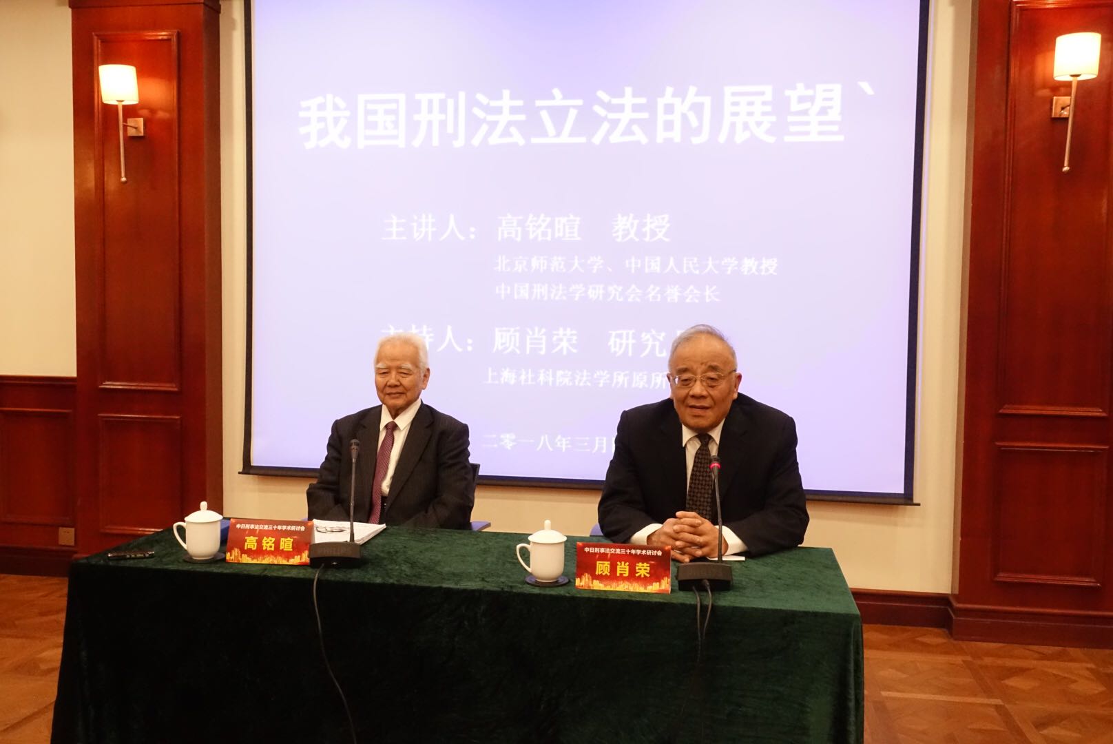 2018年3月4日上午,由上海社会科学院法学研究所主办、上海七方律师事务协办的上海社科院法学所七方法律高端讲坛第一讲在上海社科院总部举办。本次论坛非常荣幸地邀请到中国著名法学家和法学教育家、刑法学泰斗、新中国刑法学的主要奠基者和开拓者、中国国际刑法研究开创者、中国刑法学研究会名誉会长高铭暄教授给我们开讲,并由上海社科院法学研究所原所长、著名刑法学者顾肖荣研究员主持。