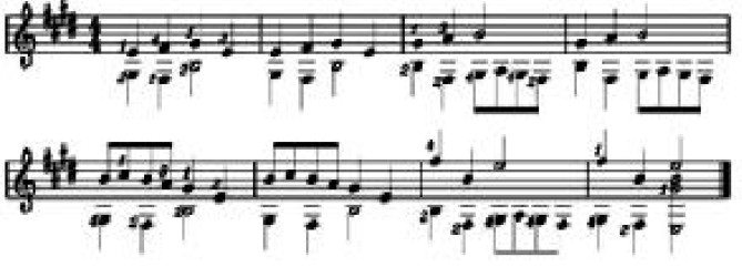 “Counter Point”即“对位法”,是在音乐创作中使两条或者更多条相互独立的旋律同时发声并且彼此融洽的技术。对位法是音乐史上最古老的创作技巧之一,是复调音乐的主要写作技术,其曲谱图形举例如下: