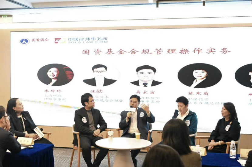 在随后的圆桌交流环节,由上海中联律师事务所合伙人米玲玲主持。上海上实资本管理有限公司首席风险合规官汪劼、上海邦信阳律师事务所合伙人吴家寅、中保投资有限公司法务合规部总经理张寒菊、委员会委员姚婕等实务专家,围绕“国资基金合规管理操作实务”展开深度对话与热烈讨论,为现场与会者提供了宝贵的经验分享与思路启发。