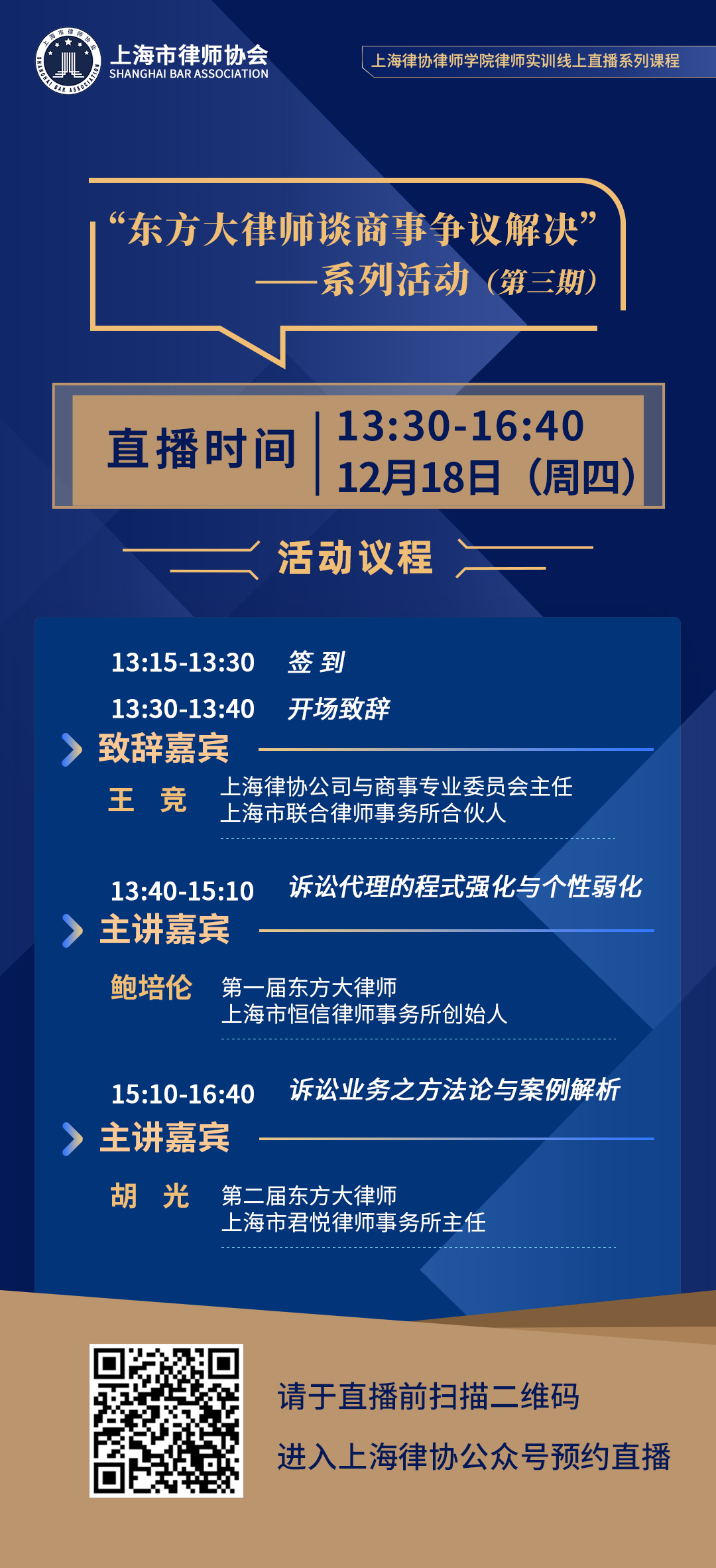 线下地点:上海律协报告厅(徐汇区肇嘉浜路789号35楼)