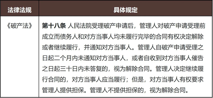 如果屋顶业主在电站运营期内申请破产,能源管理协议大概率会被认定为未履行完毕的合同,《破产法》第十八条赋予破产管理人在该等协议上的决策空间比较大,如果破产管理人决定解除能源管理协议,则会严重影响屋顶光伏电站的投资收益,因此,我们建议,在能源管理协议中对屋顶业主破产的情形设置保护性制度。实务中,一般约定项目公司在屋顶业主破产的情形下有权要求其按照一定价格(如资产残值)买断电站并赔偿项目公司损失,并协助项目公司完成破产债权申报。