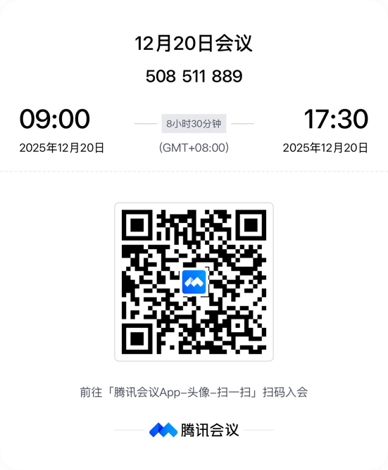 腾讯会议号:508 511 889(12月20日),770 291 667(12月21日)