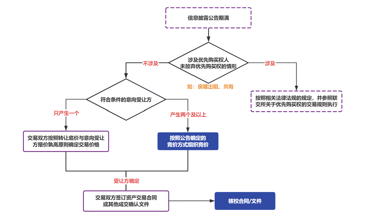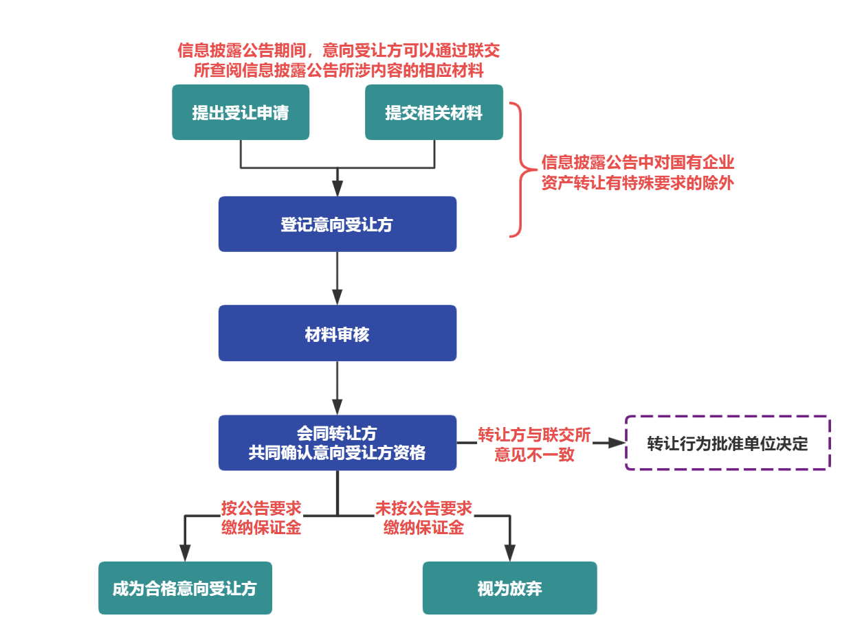 《操作规则》第十九条-第二十一条及第二十三条参照17号文第十八条-第二十条及第二十三条产权转让的相关规定,落实修订了国有企业资产转让过程中意向受让方的申请、审核及确认的流程。